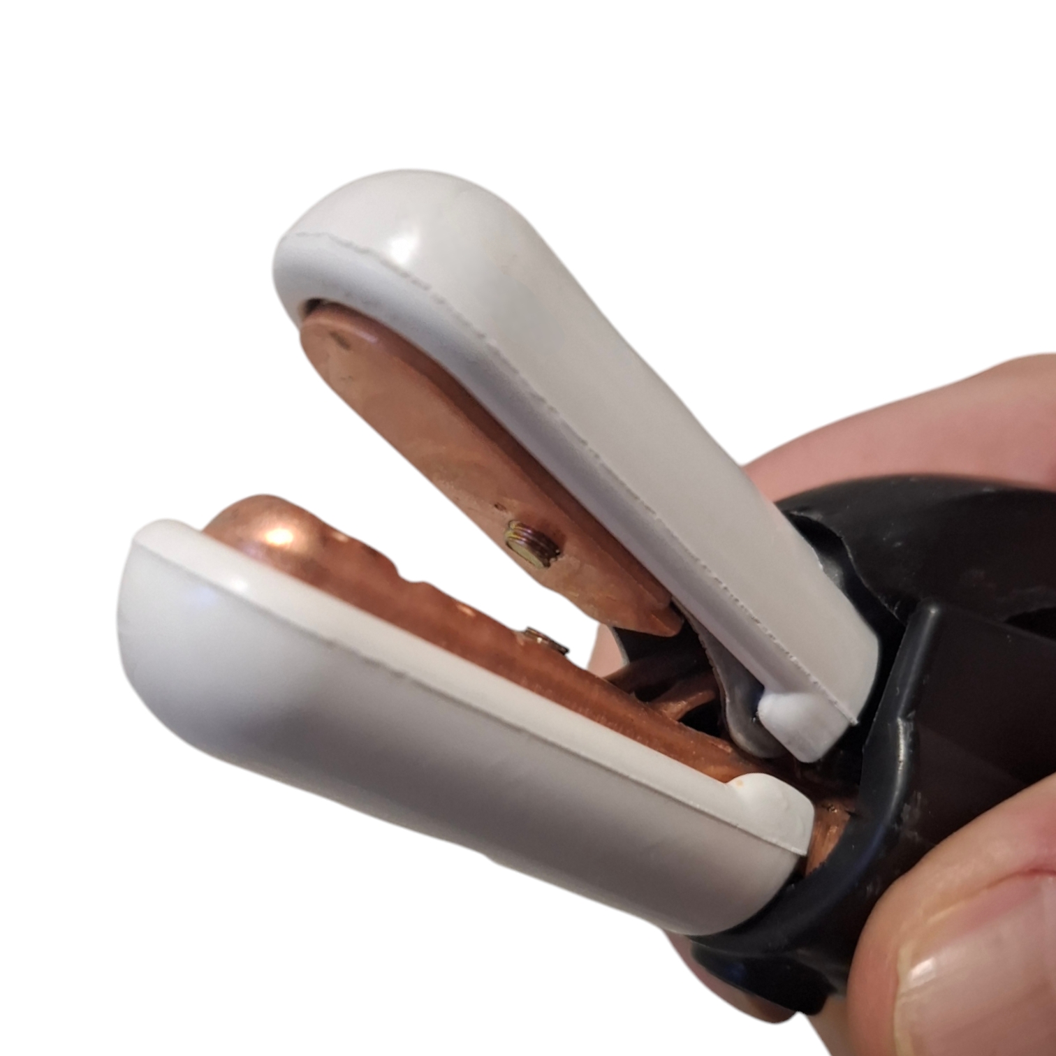 Сварочный пружинный держатель предназначен для зажима и удержания электродов с током не более 300 А. Пластиковые ручки являются изолятором, но при этом важно, чтобы электроведущие части держателя не соприкасались со свариваемым изделием или руками человека.