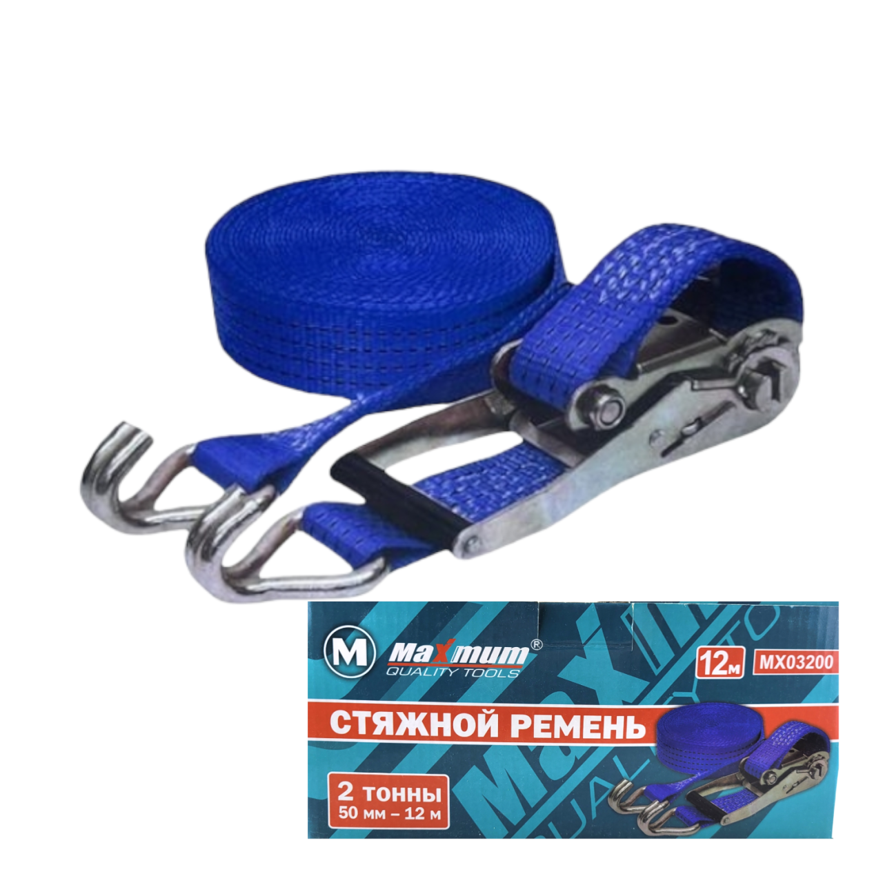 Ремень стяжной 12 метров от "MAXIMUM QUALITY TOOLS" рассчитан на крепление груза до 2 тонн. Ремень для крепления грузов оснащен храповым механизмом, который позволяет использовать весь ресурс изделия при закреплении груза. Данная модель оснащена регулировкой длины. Лента из полиэстера 50 мм шириной имеет специальную двойную прошивку, которая повышает прочность и долговечность изделия. Храповик и крюки для стяжки груза выполнены из оцинкованной стали, которая не боится коррозии.