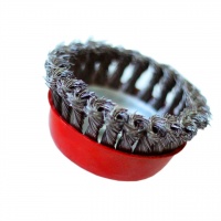 Щетка-крацовка чашечная для УШМ 150 мм предназначена для зачистки поверхностей от лакокрасочных покрытий, ржавчины, окалины, различных стойких загрязнений, а также для зачистки сварных швов. Щетка изготовлена из стальной жгутированной проволоки. Благодаря еще более высокой жесткости сплетенного пучка и увеличенной толщине проволоки щетка обладает повышенным ресурсом. Каждая щетка-крацовка соответствует действующим стандартам качества и обеспечивает безопасную работу в указанном диапазоне оборотов до 3750 RPM. Диаметр проволоки 0.5 мм.