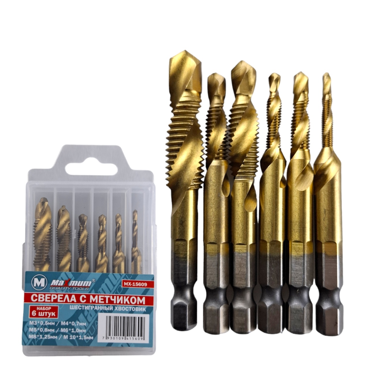 Универсальный набор сверл-метчиков HSS с шестигранным хвостовиком от "Maximum Quality Tools" поставляется в удобном пластиковом кейсе и отлично подойдет для работы с шуруповертом.